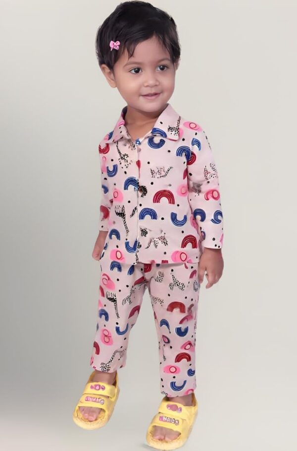 This Cotton Full Sleeves Night Suit – Pink is made from soft and breathable cotton for all-night comfort. It includes a full sleeves top and matching bottoms with an elastic waistband for a relaxed fit. Perfect for sleepwear, nightwear, and comfortable home wear. 🌙👚