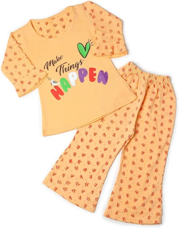 The vibrant orange color with attractive prints adds a cheerful and stylish look, making this night suit perfect for sleepwear, lounging, and casual home wear. Combining softness, comfort, and a fun design, this cotton night suit is both practical and fashionable.