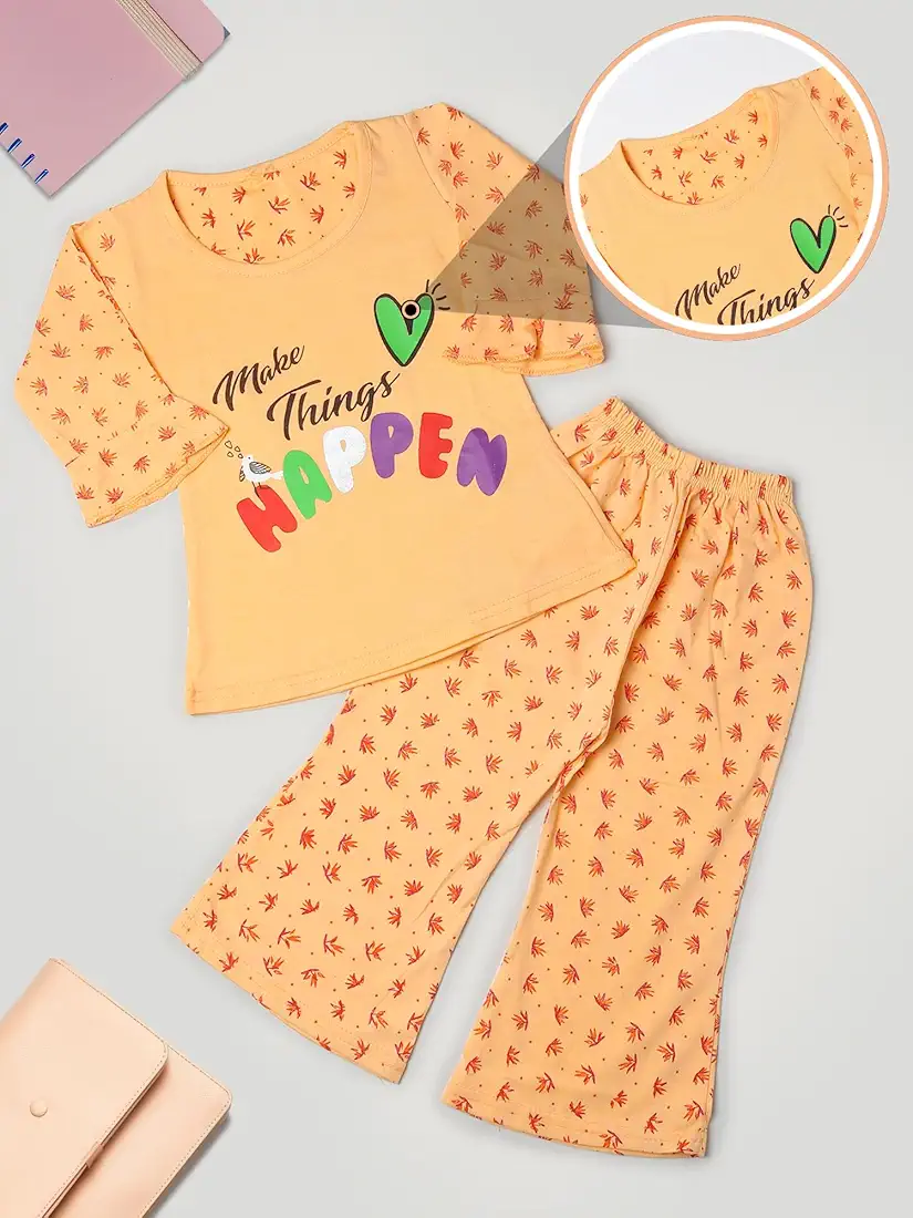 Cotton Printed Night Suit/ Palazzo Night Suit (Orange)