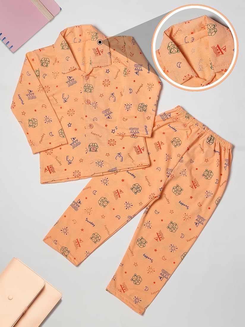 The vibrant orange color with attractive prints gives this night suit a fresh and stylish look, making it perfect for both nightwear and casual home wear. Ideal for sleeping, lounging, and relaxing, this cotton night suit combines softness, comfort, and modern style.