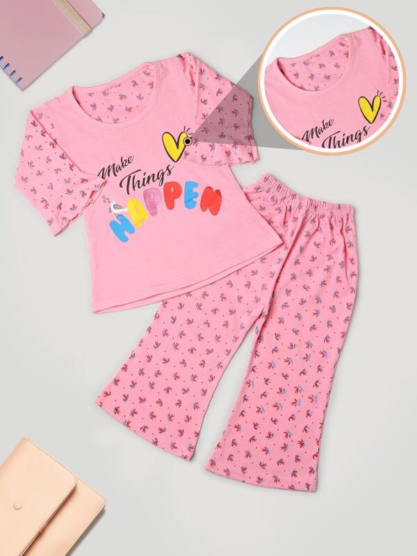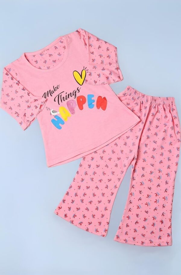 The soft pink color with attractive prints adds a stylish and charming touch, making this night suit ideal for sleepwear, lounging, and casual home wear. Combining comfort, softness, and a fun design, this cotton night suit is both practical and fashionable.