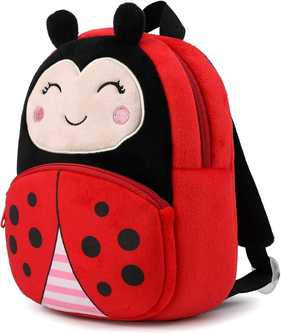 Cute red bee plush kids backpack, soft, lightweight, and perfect for toddlers.