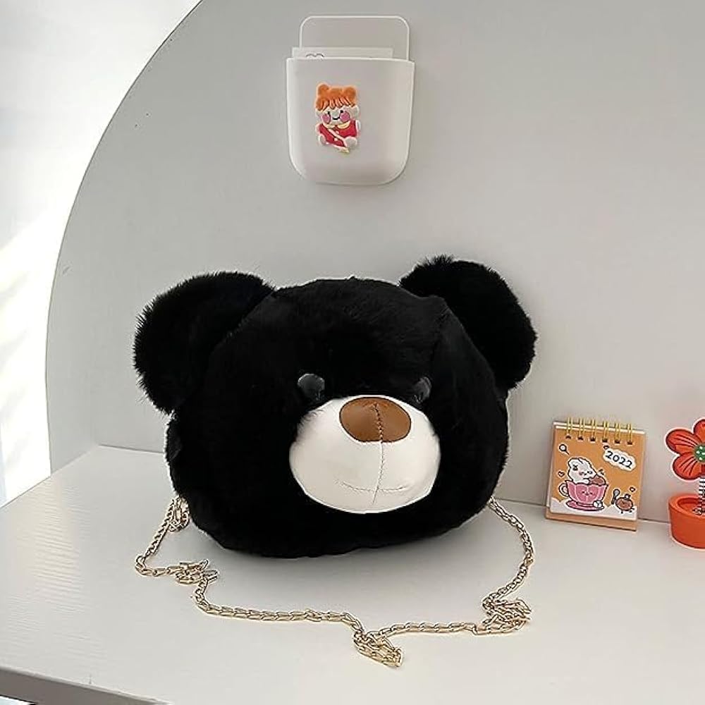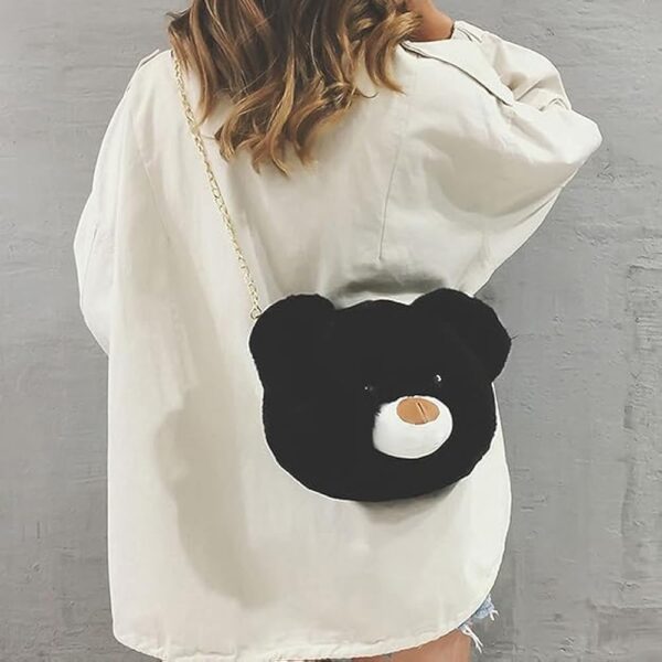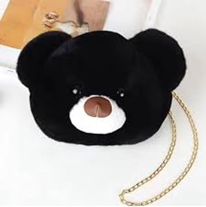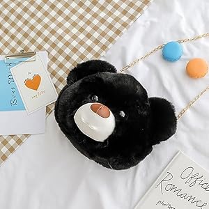 Cute Panda Teddy Bear Face Sling Bag (Black) is made with soft faux fur material and features a cute panda face design.