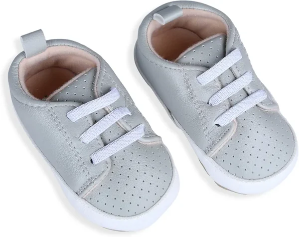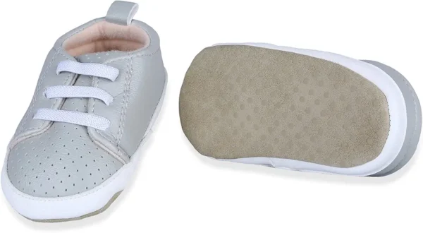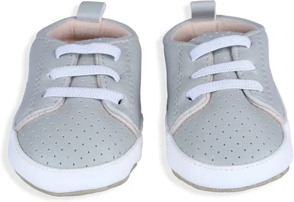 Dotted Grey Breathable Lace-Up Sneakers for Kids feature a lightweight and breathable lace-up design that keeps feet cool and comfortable.