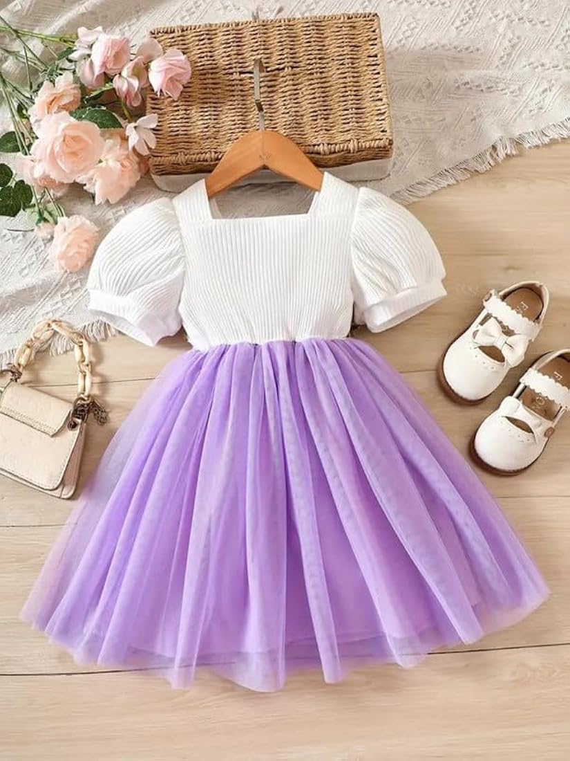 Floral Embroidery Net & Modal Short Dress for Baby Girls is made from high-quality modal fabric that is soft, breathable, and gentle on delicate baby skin.