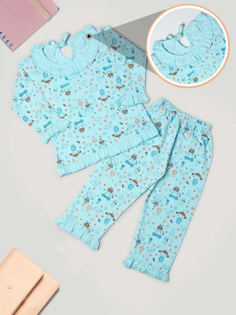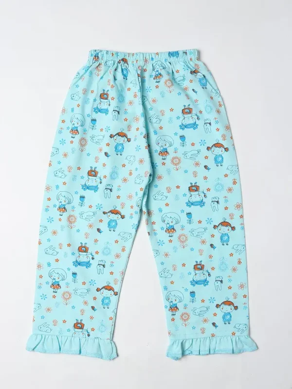 Cartoon Printed Pyjama Set for Girls (Blue Girls)