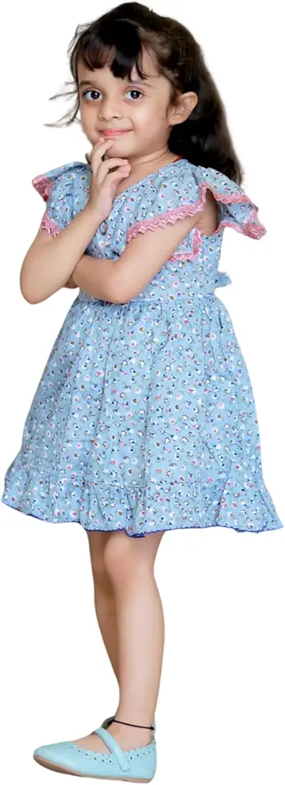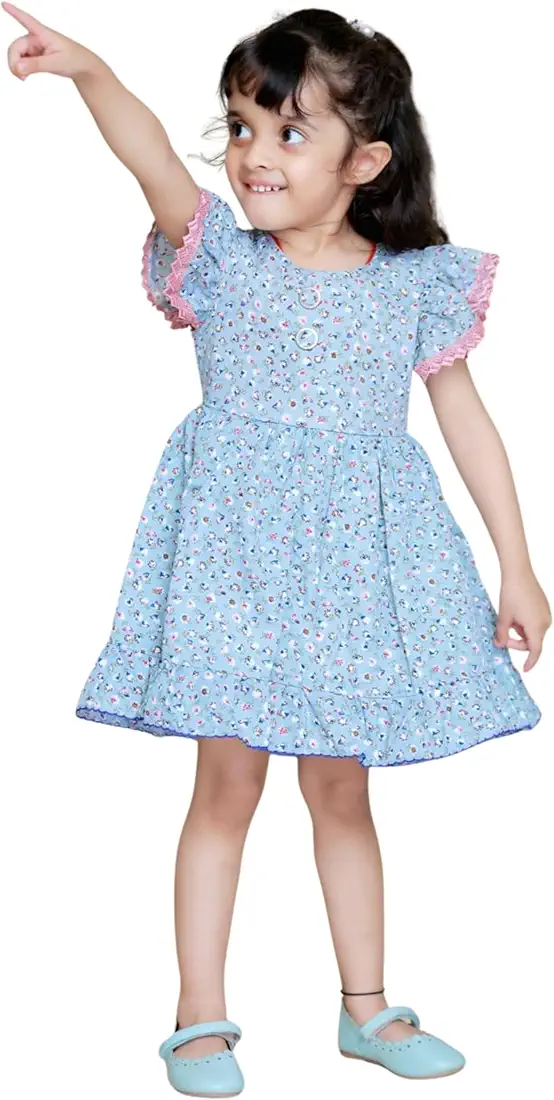 Girl’s Floral Print Cotton Dress (Pink) made from soft, breathable cotton fabric. Perfect for playtime, casual outings, and everyday stylish wear for girls.