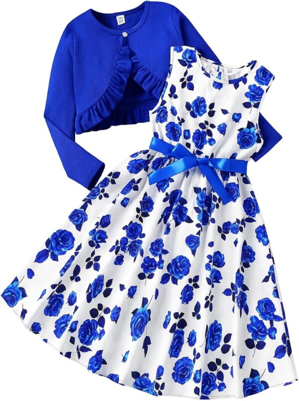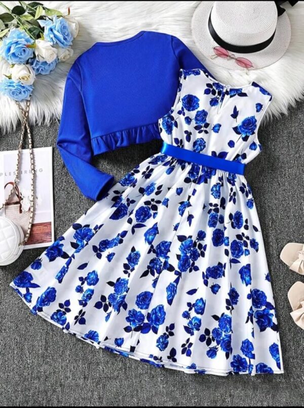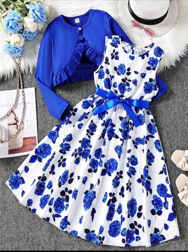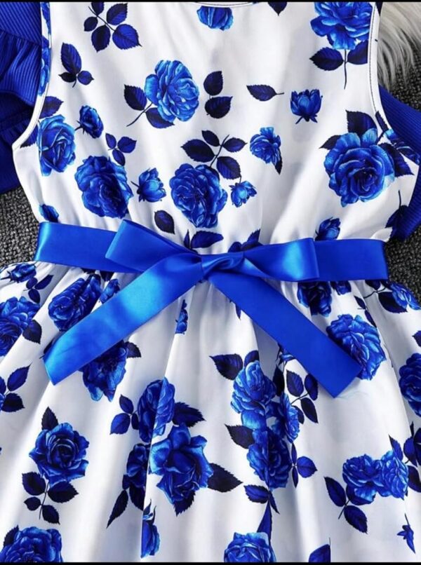 Girls Floral Printed Frocks & Dresses (Blue) made from soft, breathable fabric. Perfect for playtime, parties, outings, and daily wear for girls.