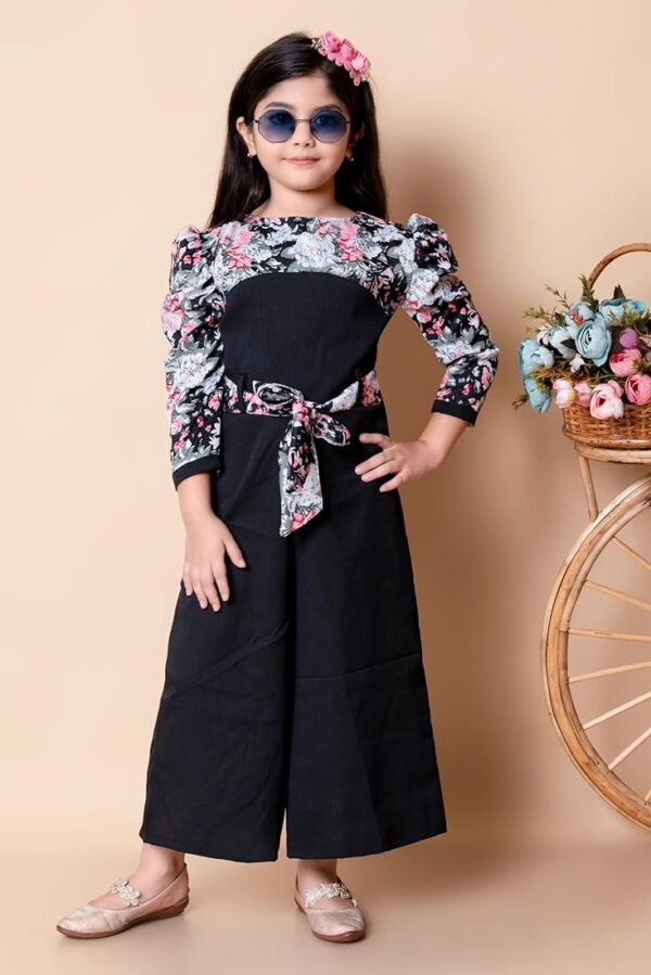 With its trendy floral design and comfortable jumpsuit style, this dress combines style, charm, and practicality, making it a must-have for your little girl’s wardrobe.