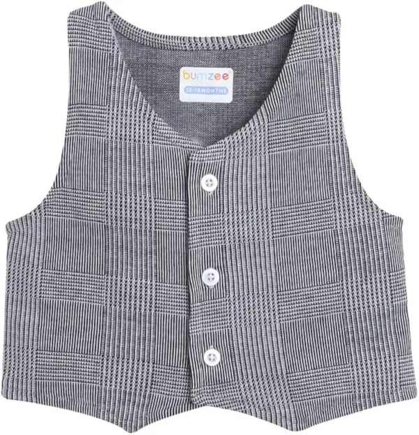 Grey & White Boys Shirt Waistcoat Set is made from 100% pure cotton fabric for comfort and breathability.