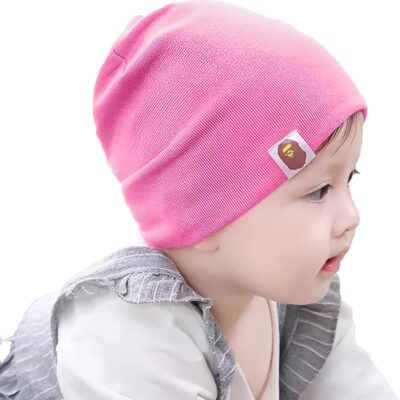 Pink Baby Plain Stretchable Knitted Cotton Cap
