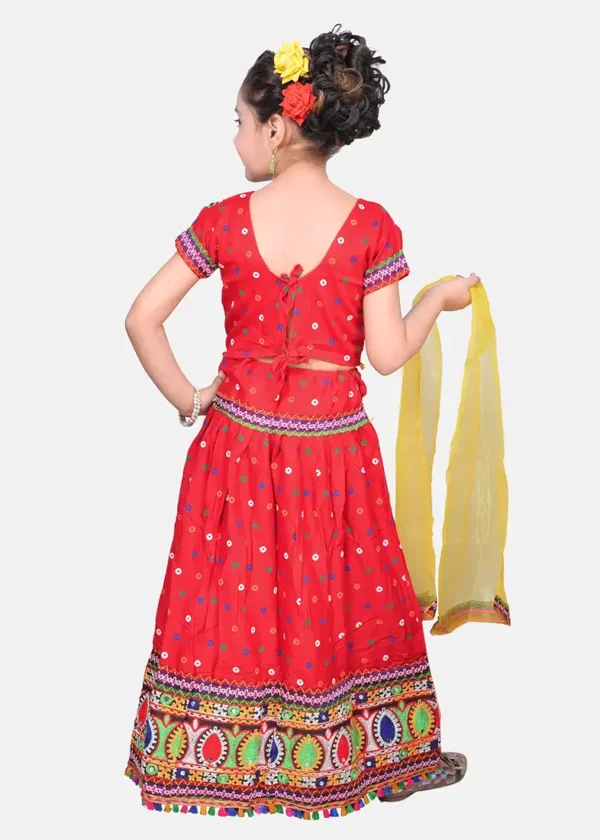 Kids Ethnic Cotton Blend Radha Dress Lehenga Choli Set (Red) – Baby Girls Traditional Wear for Weddings & Festivals