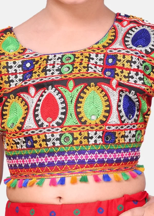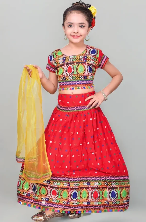 Dress your little one in festive charm with this Kids Ethnic Cotton Blend Radha Dress Lehenga Choli Set in Red. Inspired by traditional Radha-style Chania Choli, this outfit brings a perfect blend of cultural elegance and comfort, making it ideal for weddings, festivals, birthday parties, and cultural celebrations.