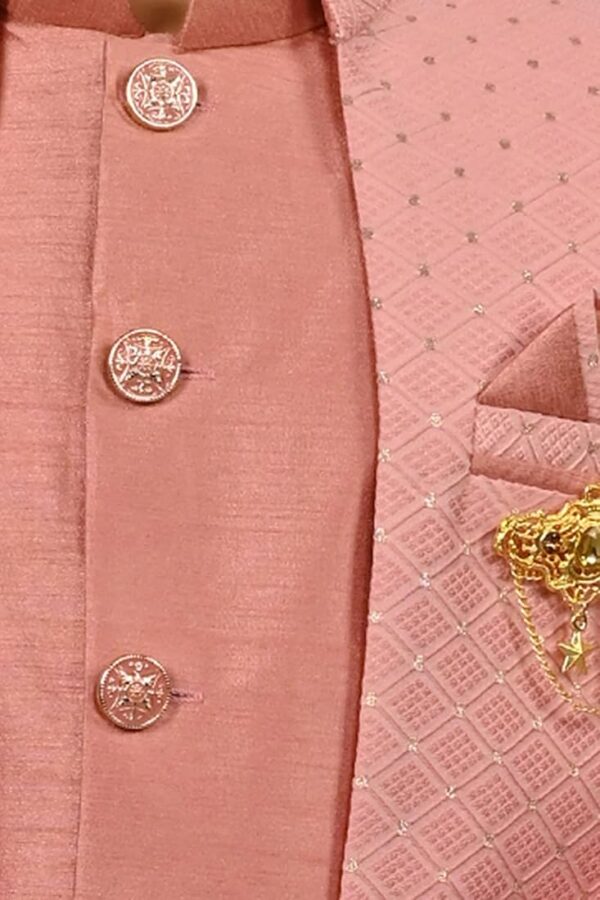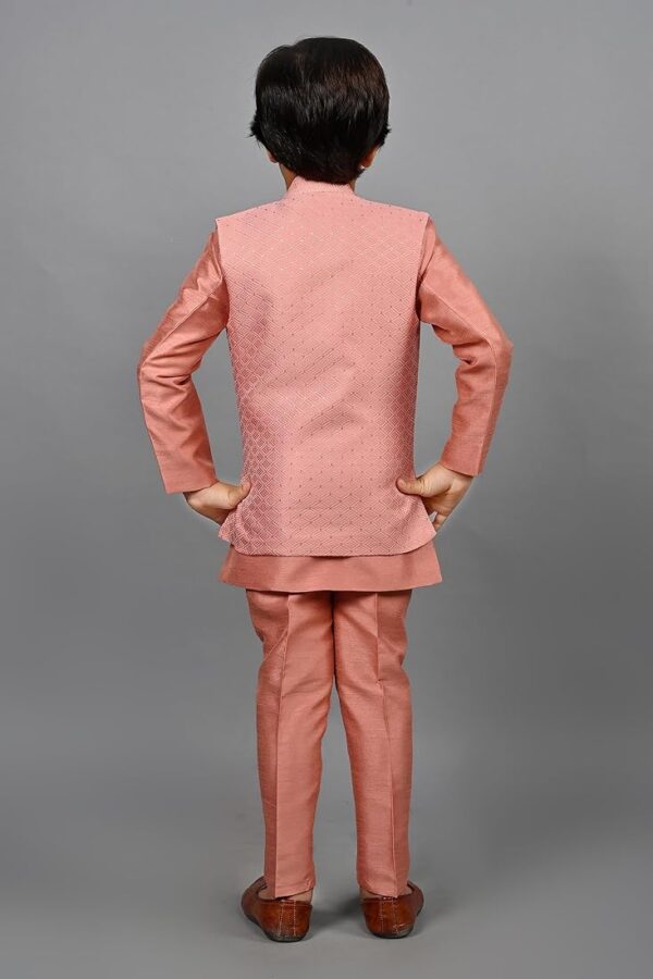 Kids Ethnic Silk Indian Bollywood Style Print Indo-Western Sherwani Set for Boys (Pink) – Traditional & Party Wear