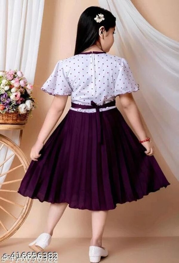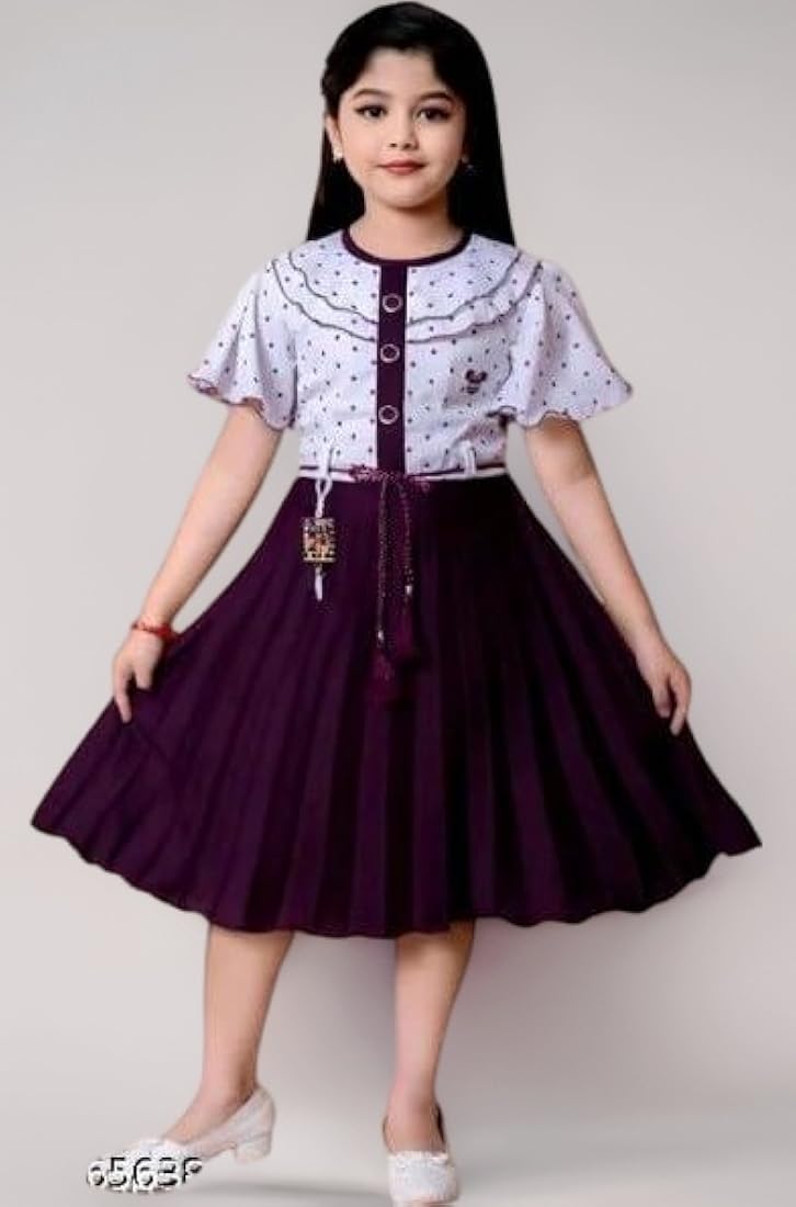 The knee-length design ensures easy movement, keeping your child comfortable throughout the day. Its vibrant purple color adds a cheerful and trendy touch, while the lightweight and breathable fabric keeps your little girl cool and relaxed.