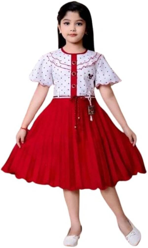 The knee-length design allows easy movement, keeping your child comfortable throughout the day. The vibrant red color adds a cheerful and stylish look, while the lightweight and breathable fabric ensures all-day comfort, even during warm weather.