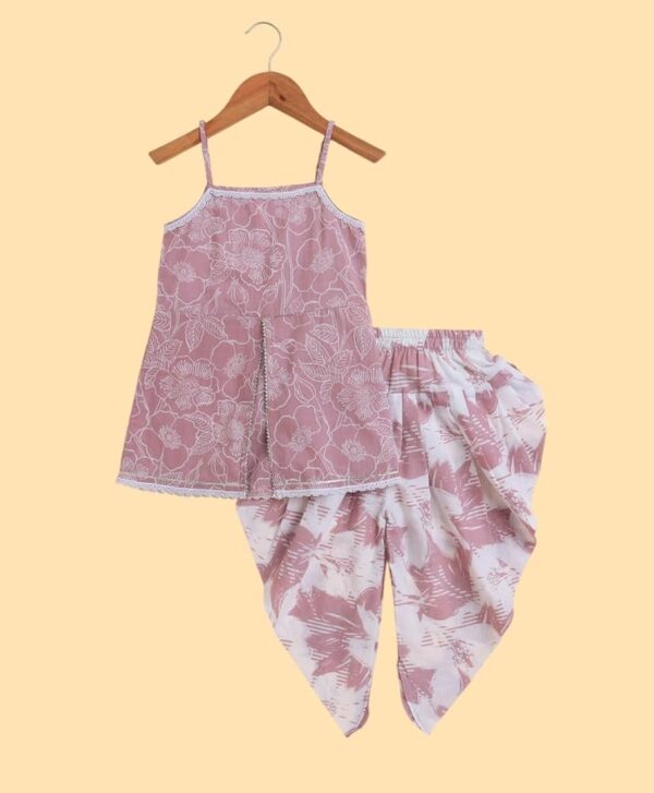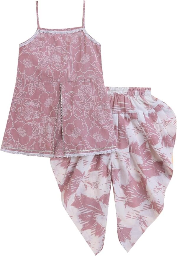 Kids Girls Dhoti Kurta Set Frock Style (Mix White Pink)