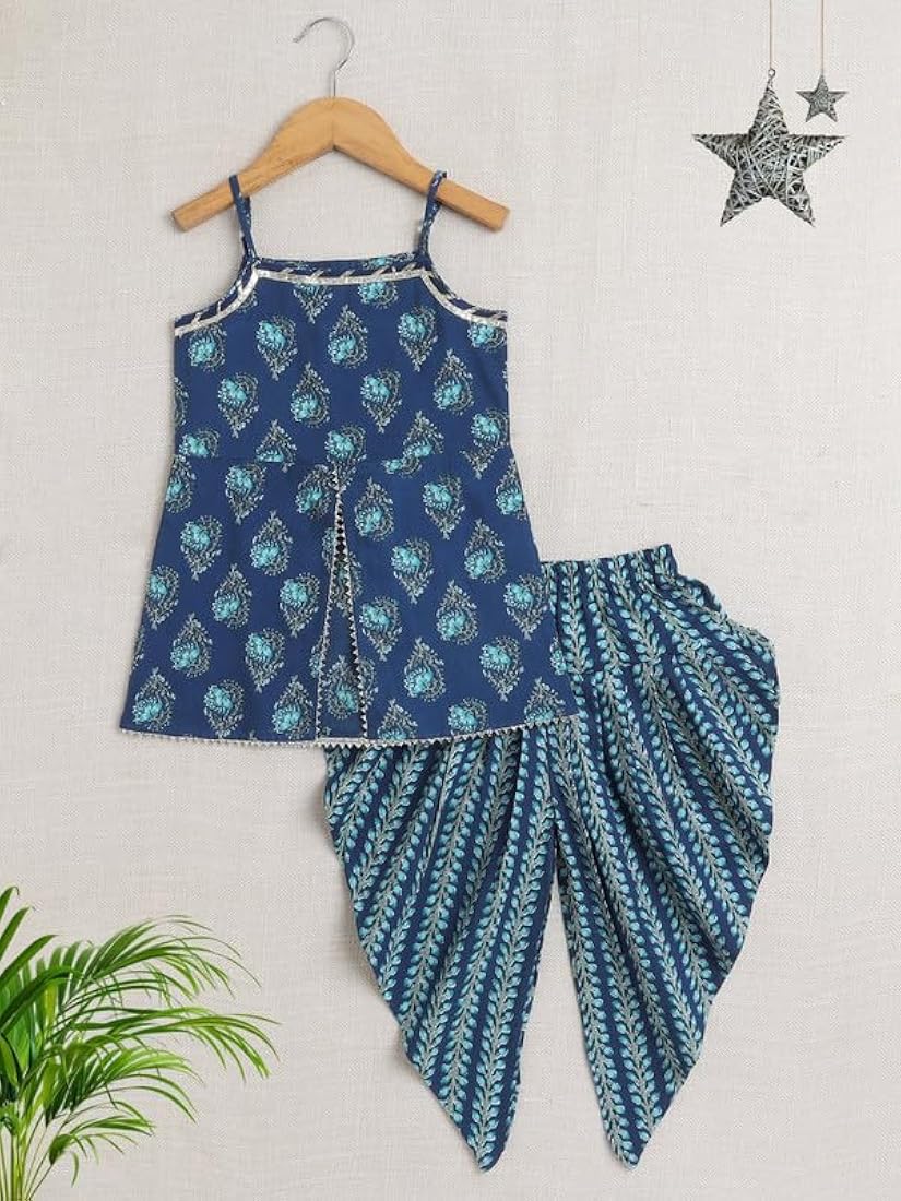 Kids Girls Dhoti Kurta Set Frock Style (Navy Blue)