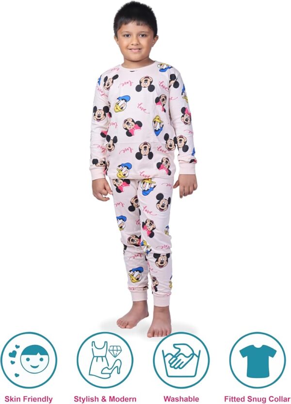 The peach color with Mickey Mouse prints adds a playful and charming touch, making this nightwear set perfect for nightwear, sleepwear, and home lounging. Combining softness, comfort, and fun designs, it’s ideal for kids who love their favorite characters.