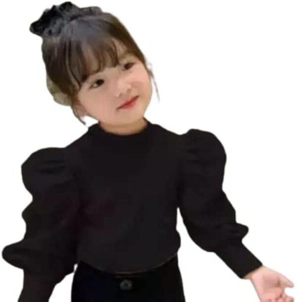 Kids Puff Sleeve Top Regular Wear Puff Sleeve Top for Girls (Black)