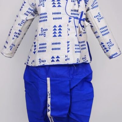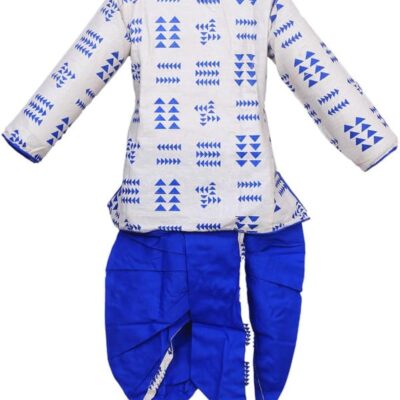 Boys Kids Ethnic Traditional Wear Set – Stylish Festive Outfit (White Blue)