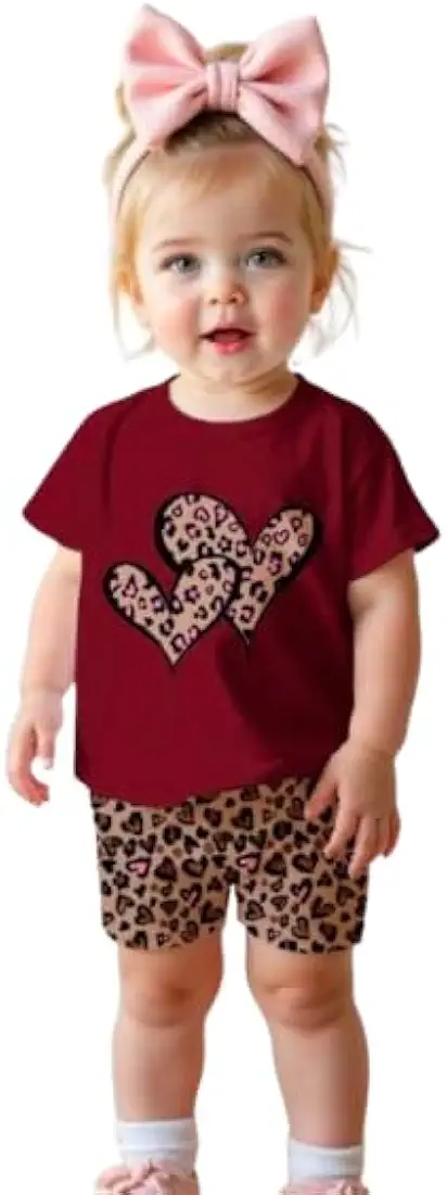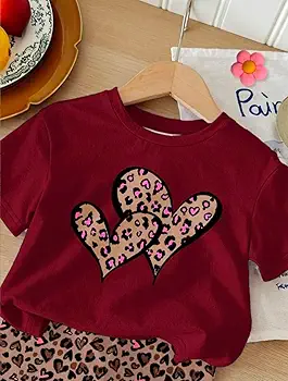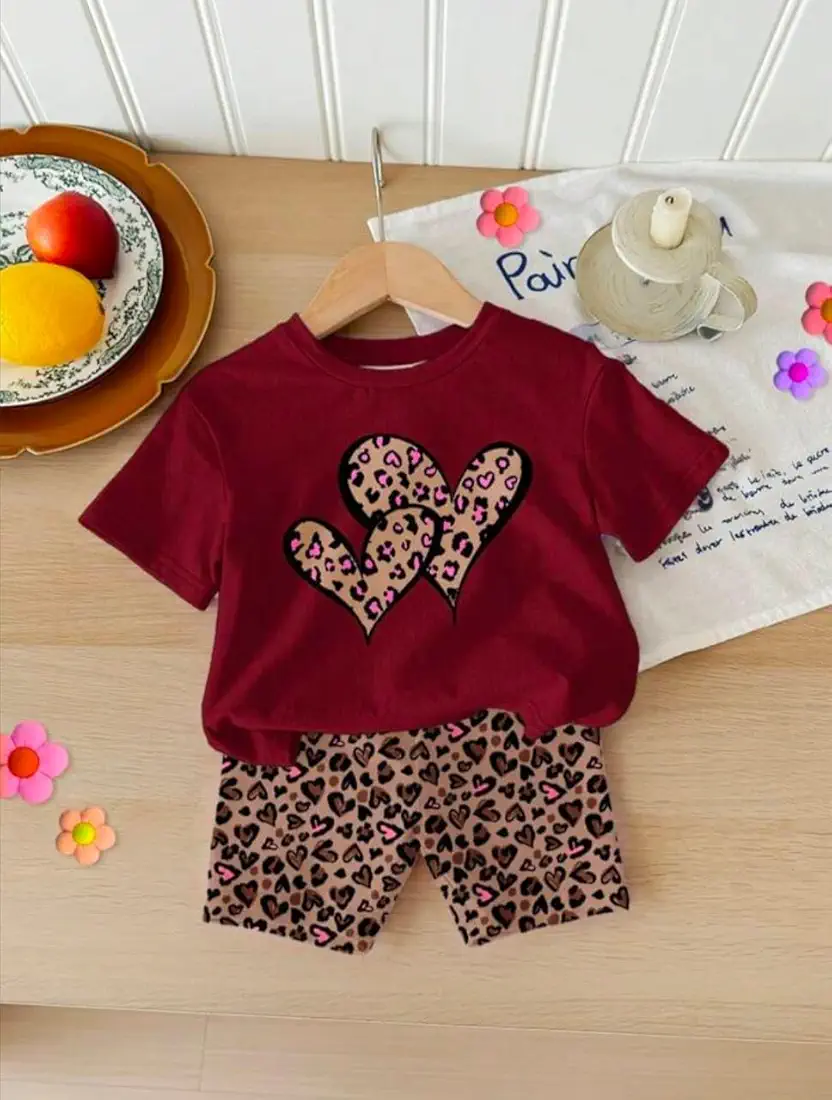Adorable red leopard heart print clothing set for baby girls, designed for both comfort and style. Made with soft, breathable fabric, this cute outfit is perfect for everyday wear, playtime, and outings.