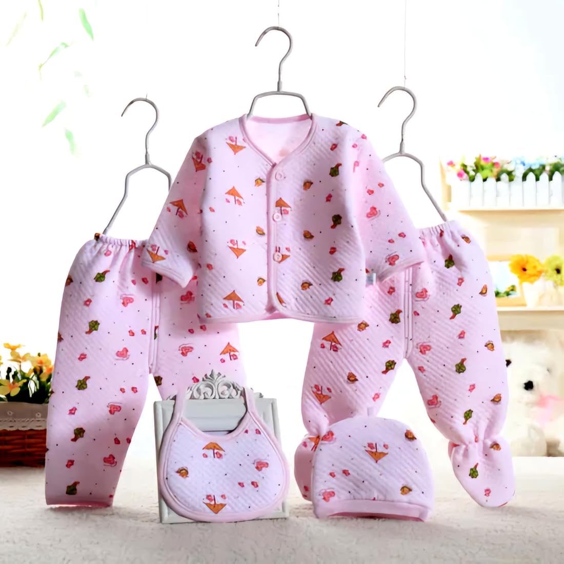 New Born Baby Summer Wear 5Pcs (Pink)