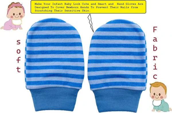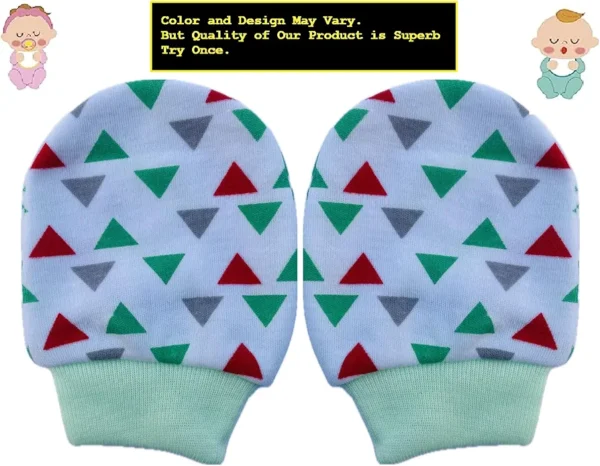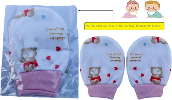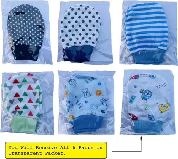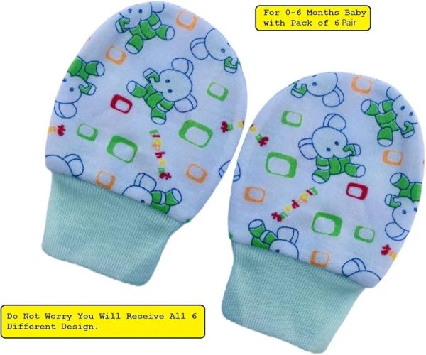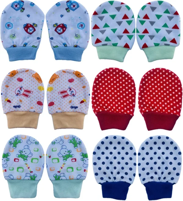 This newborn baby cotton hand mittens set includes 6 pairs designed to keep your baby’s hands safe and comfortable. Made from soft and breathable cotton, these mittens are gentle on delicate baby skin and help babies sleep without disturbance. The stretchable fabric with a soft rib makes them easy to wear and ensures a secure fit. Multicolor designs add a cute touch and match different baby outfits. Easy to wash and travel-friendly, they are perfect for both indoor and outdoor use.