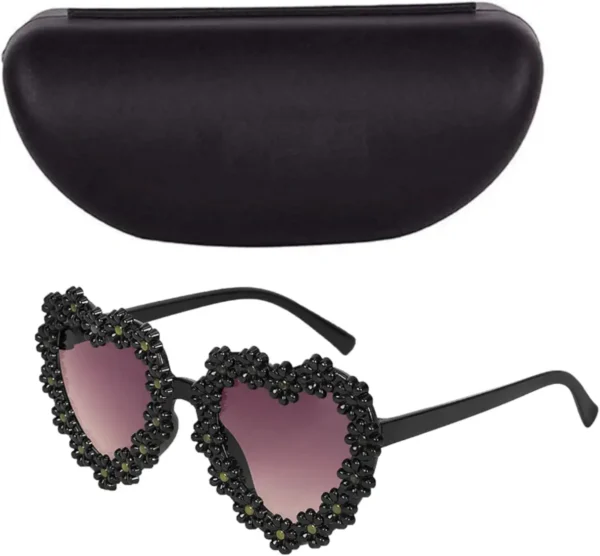 Pink Heart Shape Sunglasses (Black) – Trendy heart-shaped sunglasses with UV400 protection and a lightweight frame, perfect for stylish girls aged 3–10.