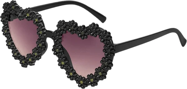 Pink Heart Shape Sunglasses (Black) feature a cute and trendy heart-shaped frame that kids love.