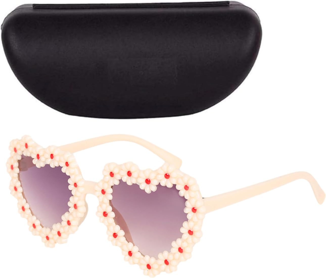 Pink Heart Shape Sunglasses (White ) feature a cute and trendy heart-shaped frame that kids love.