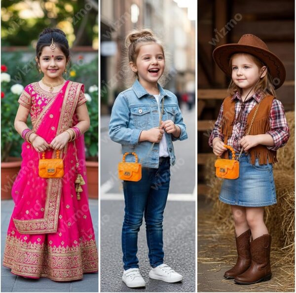 Purse for Kids Girls Stylish Mini Sling (Orange) is a cute and trendy mini purse designed for girls aged 3–12 years.