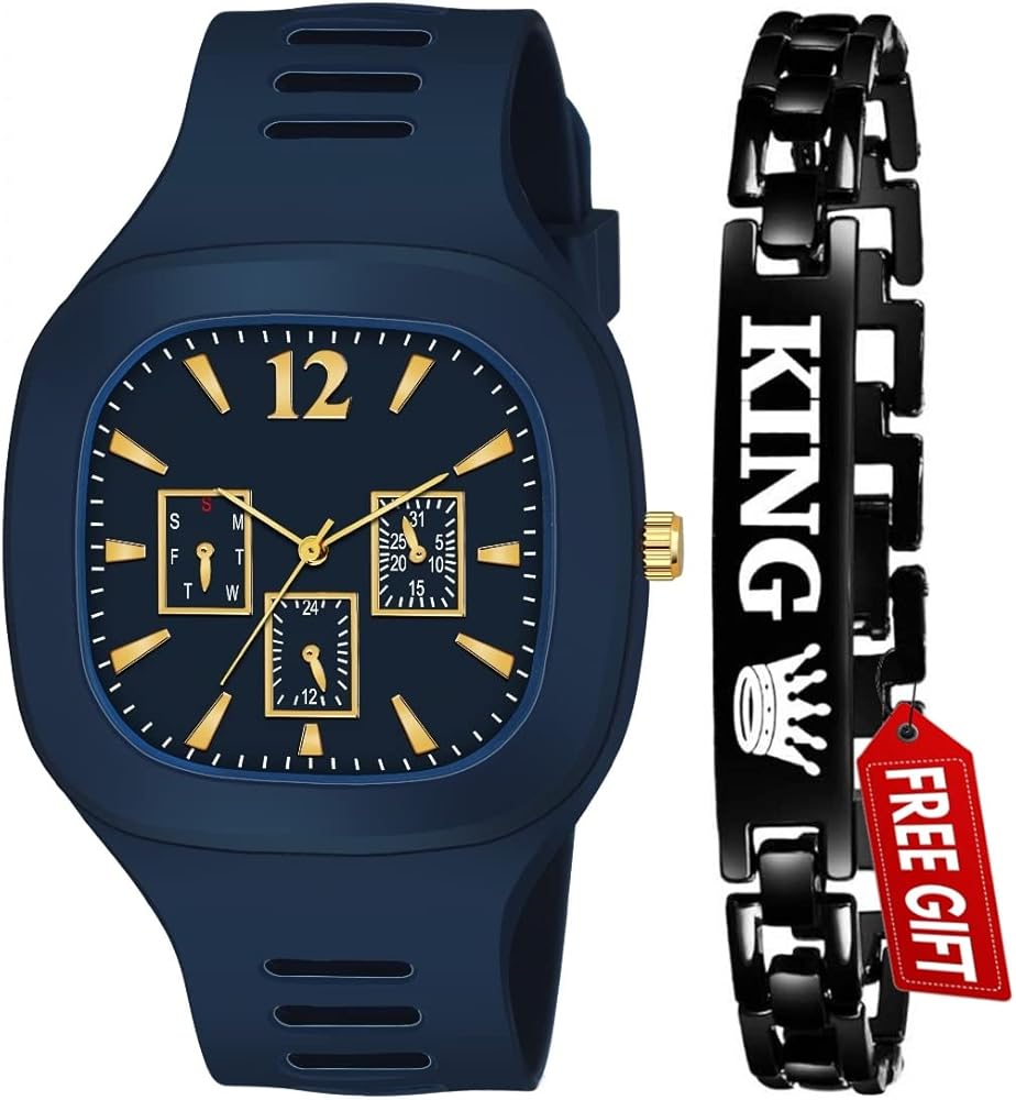Square Multi Dial Analog Silicone Watch (Blue) features a modern square dial with a multi-dial chronograph style design for a bold and stylish look.