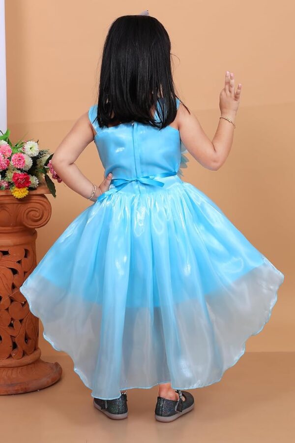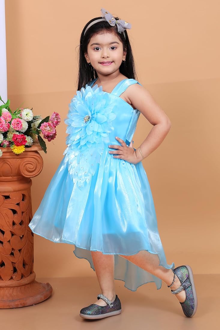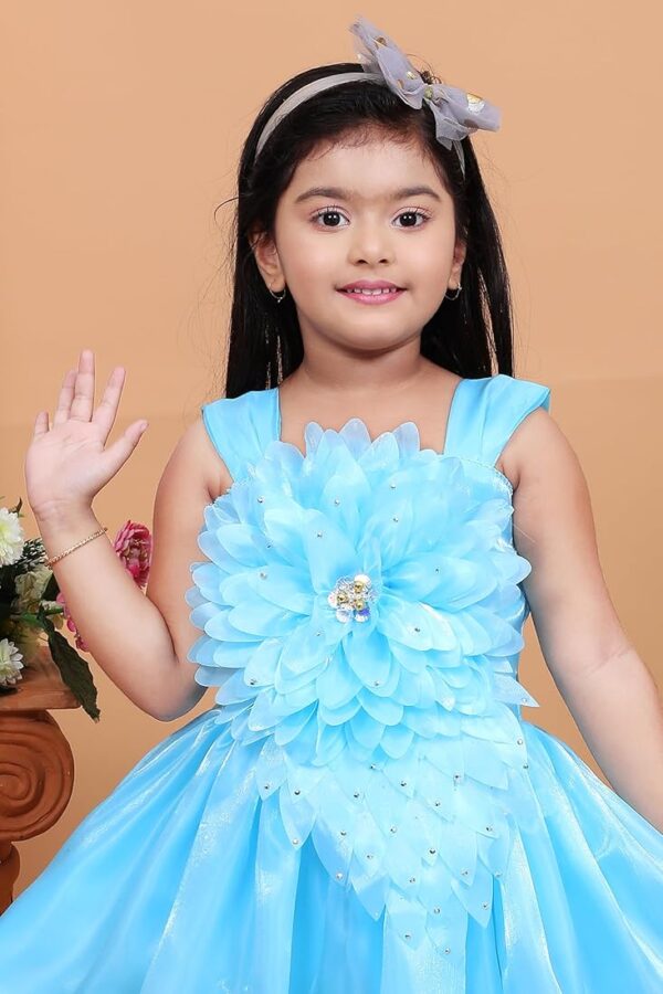 Teal Floral Embellished Party Dress for Girls – Elegant floral dress with sparkling embellishments and a flared skirt for special occasions.