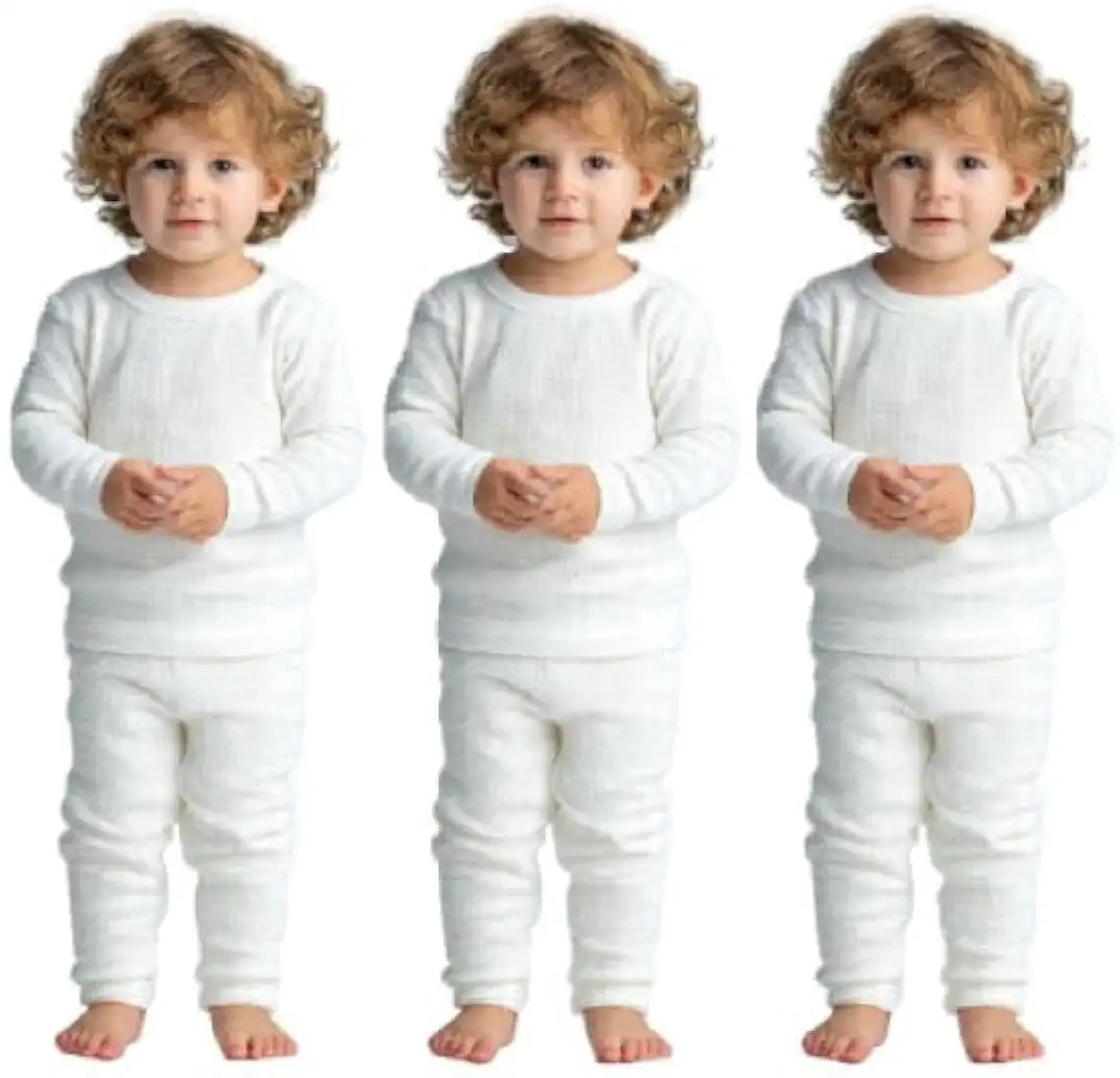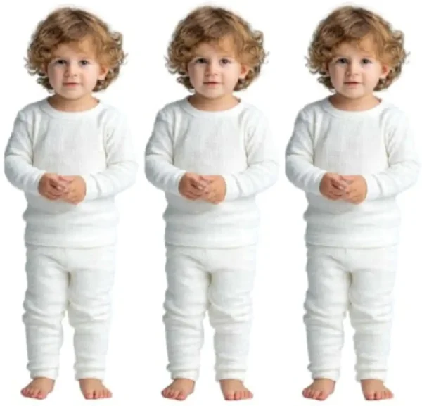 Thermal Winter Wear Set for Kids – White Long Sleeve is made from premium cotton thermal knit fabric for warmth and comfort.