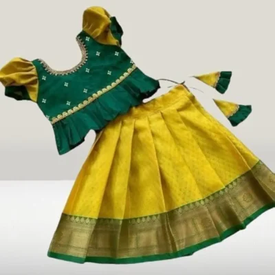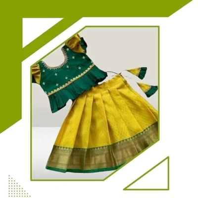 Kids Lehenga Choli Cotton Silk Dress (Green Yellow) – Girls Traditional Ethnic Outfit for Weddings, Festivals & Parties