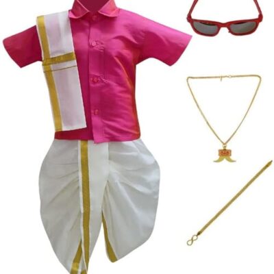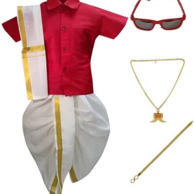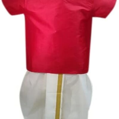 Kids Royal Look Boys Silk Cotton (Pure White) (Red)
