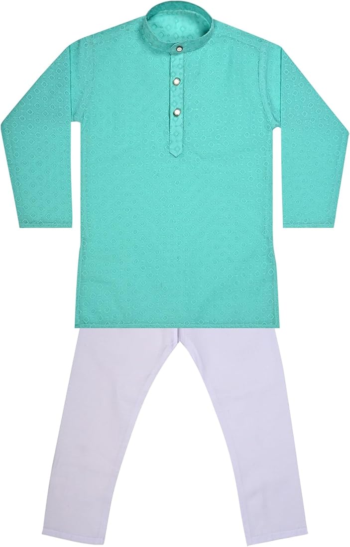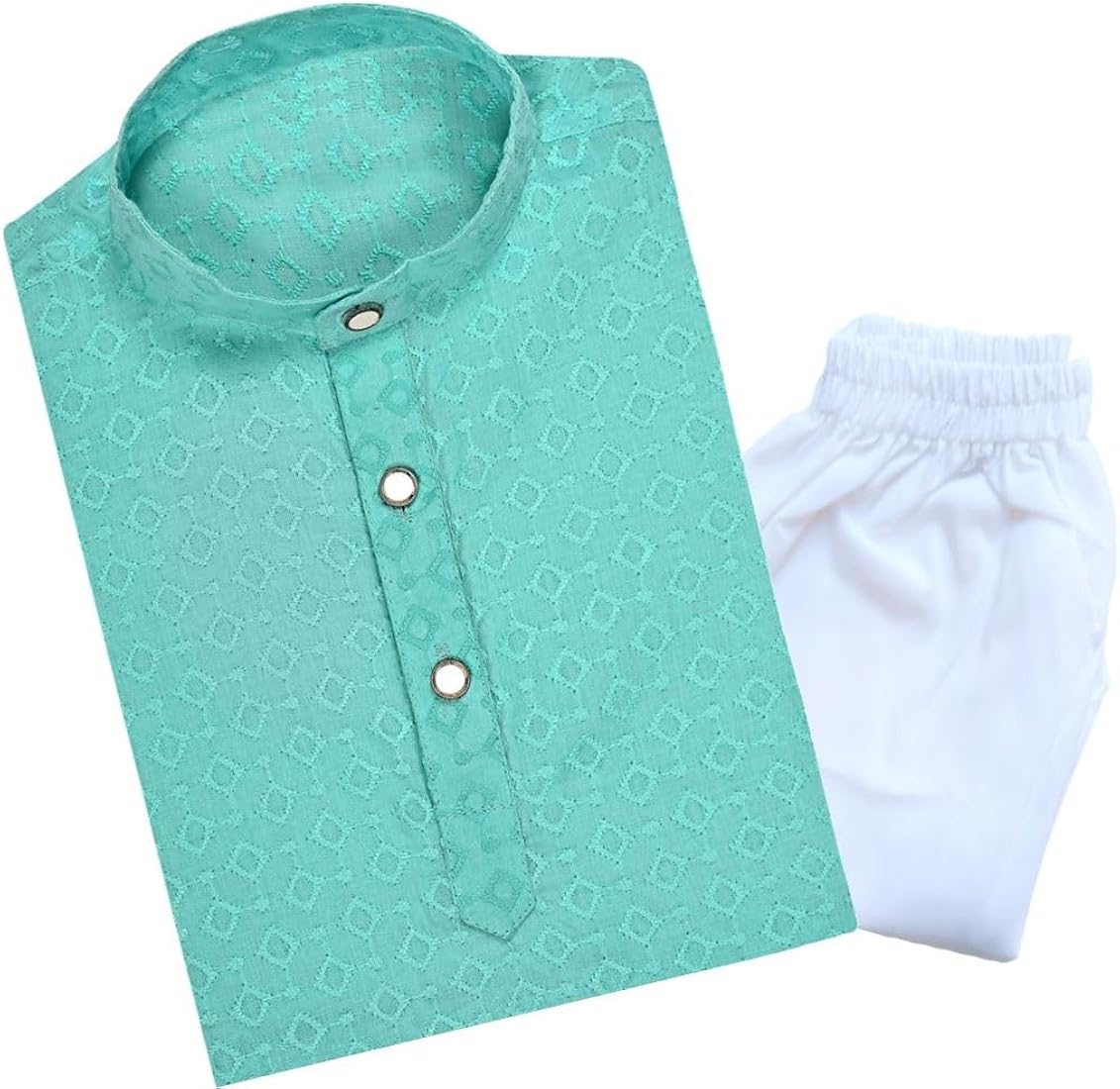 Chikankari Cotton Kurta Pajama Set | Full Sleeve Printed Kurta & White Elastic Pajama | Ethnic Wear for Festivals & Weddings (Sea green)
