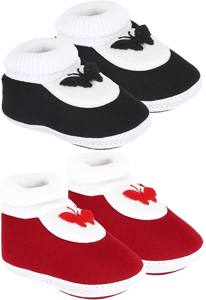 0 to 6 Months Baby Boys and Girls Pack of 2 Pair (Black – Red)