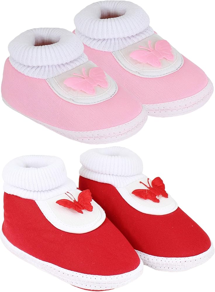 0 to 6 Months Baby Boys and Girls Pack of 2 Pair (Red – Pink)