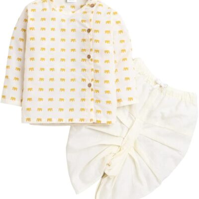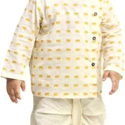 Boys Elegant Traditional Dhoti Kurta Set (Yellow Elephant) – Kids Ethnic Wear for Weddings, Festivals & Parties