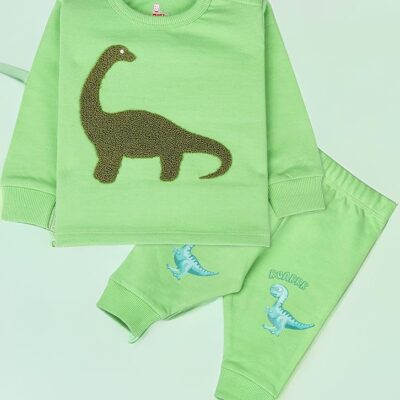 Unisex Cotton Fleece Full Sleeve Track Suit for Boys & Girls (Green Panda ).