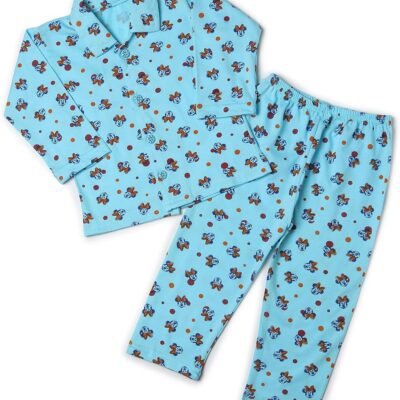 Sleepsuit for Baby Boy Girl | Bottom Pyjama Set for Kids | Cartoon Printed Cotton Night Suit | Sleep Wear | Full Sleeves T-Shirt with Trouser | Night Dress (blue)