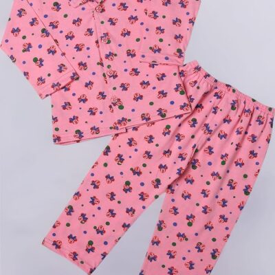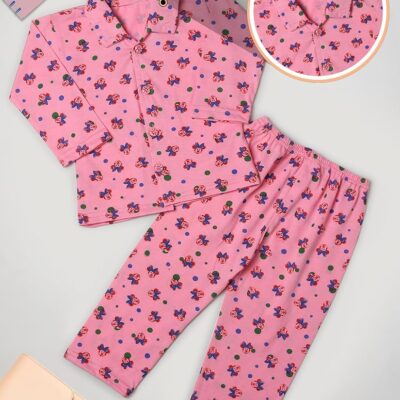Sleepsuit for Baby Boy Girl | Bottom Pyjama Set for Kids | Cartoon Printed Cotton Night Suit | Sleep Wear | Full Sleeves T-Shirt with Trouser | Night Dress (Pink)