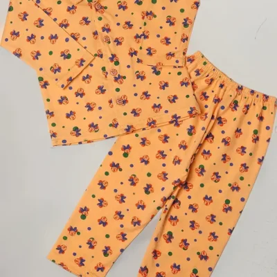 Sleepsuit for Baby Boy Girl | Bottom Pyjama Set for Kids | Cartoon Printed Cotton Night Suit | Sleep Wear | Full Sleeves T-Shirt with Trouser | Night Dress (Orange)