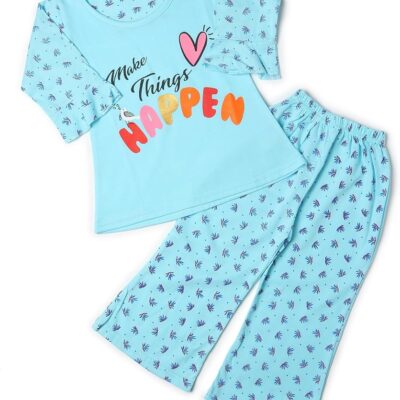 Cotton Printed Night Suit/ Palazzo Night Suit (Blue)