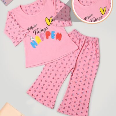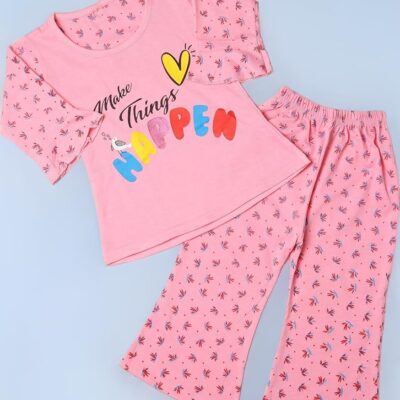 Cotton Printed Night Suit/ Palazzo Night Suit (Pink)