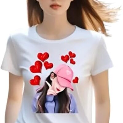 Women’s Cotton T-Shirt | Soft & Stylish Casual Tee for Girls & Women | Round Neck, Half Sleeve | Summer Wear Top (Cute Girl)