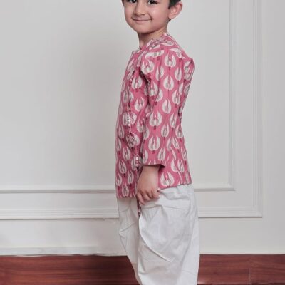 Boys Elegant Traditional Dhoti Kurta Set (Pink Bird) – Kids Ethnic Wear for Weddings, Festivals & Parties